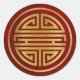 These stickers feature a Chinese shou character which represents longevity. The symbol is coloured in gold on a textured red background.
