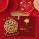 Celebrate the Chinese Lunar New Year with this stunning greeting card featuring a golden snake intricately designed within a circular frame of traditional Chinese patterns, set against a rich red background. The card is accented with auspicious symbols and includes a heartfelt message on the back with a gold lantern, wishing prosperity, happiness, and success for the year ahead. Perfect for sharing blessings with friends, family, or colleagues during the festive season.