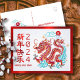 Chinese Lunar New Year Papercut Dragon 2024 Red Holiday Postcard