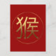 Simple and modern Greeting postcard for The Year of Monkey with the Chinese Symbol framed by a golden circle. "The Monkey (猴) is the ninth of the 12-year cycle of animals which appear in the Chinese zodiac related to the Chinese calendar. The Year of the Monkey is associated with the Earthly Branch symbol 申. " - Wikipedia 8 February 2016 – 27 January 2017: Fire Monkey -------- Persons born within these date ranges can be said to have been born in the Year of the Monkey, while also bearing its governing elemental sign (that is, Metal) = 2 February 1908 – 21 January 1909: Earth Monkey 20 February 1920 – 7 February 1921: Metal Monkey 6 February 1932 – 25 January 1933: Water Monkey 25 January 1944 – 12 February 1945: Wood Monkey 12 February 1956 – 30 January 1957: Fire Monkey 30 January 1968 – 16 February 1969: Earth Monkey 16 February 1980 – 4 February 1981: Metal Monkey 4 February 1992 – 22 January 1993: Water Monkey 22 January 2004 – 8 February 2005: Wood Monkey 8 February 2016 – 27 January 2017: Fire Monkey 26 January 2028 – 12 February 2029: Earth Monkey 12 February 2040 – 31 January 2041: Metal Monkey 1 February 2052 – 18 February 2053: Water Monkey ------- WIKIPEDIA