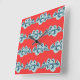 Chinese New Lunar Year Clouds Pattern Red Square Wall Clock