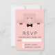 An RSVP card designed with a pink background and faded hearts with a big pink pig wearing a formal bow tie, showing off his black cloven hoofs.. Ready to celebrate Chinese New Years's, year of the pig 2019.