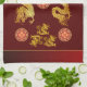 Double Chinese golden Dragon paper-cut + 2x3 other golden Dragons paper-cut with Chinese decorated pattern in the centre on dark red background. Design on kitchen towel. You can easily change background colour by clicking the customise button. Perfect for Chinese and Vietnamese Dragon New Year or birthday (people born in Dragon Year). ------------- "The Dragon (simplified Chinese: 龙; traditional Chinese: 龍) is one of the 12-year cycle of animals which appear in the Chinese zodiac related to the Chinese calendar. The Year of the Dragon is associated with the Earthly Branch symbol 辰, pronounced chen. It has been proposed by one academic researcher that the Earthly Branch character may have been associated with scorpions; it may have symbolised the star Antares." People born within these date ranges can be said to have been born in the "Year of the Dragon", while also bearing the following elemental sign: 22 January 1928 - 9 February 1929 = Earth Dragon,