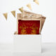 Double Chinese goldenn Dragon paper-cut with red old Chinese ideogram for Dragon in the centre + "Year of the Dragon" + large customisable red 2024 + customisable "Happy Chinese New Year" on traditional decorated pattern as background. Design on kraft favour bag. Matching greeting card, Holiday postcard, craft products and more soon... Perfect for Chinese New Year of the Dragon or Birthday (people born in Dragon Year).