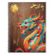 Cute Dragon (illustration) + Fu ideogram (for Luck) + 2024 + "Year of the Dragon" and Monogram to customise in "wooden" (image printed) as background. Design on basic spiral notebook. Perfect for Chinese New Year of the Dragon 2024 or birthday (people born in Dragon year). ---------- "The Dragon (simplified Chinese: 龙; traditional Chinese: 龍) is one of the 12-year cycle of animals which appear in the Chinese zodiac related to the Chinese calendar. The Year of the Dragon is associated with the Earthly Branch symbol 辰, pronounced chen. It has been proposed by one academic researcher that the Earthly Branch character may have been associated with scorpions; it may have symbolised the star Antares." People born within these date ranges can be said to have been born in the "Year of the Dragon", while also bearing the following elemental sign: 22 January 1928 - 9 February 1929 = Earth Dragon,