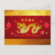 Cute paper-cut of a Dragon with drop shadow placed onto a decorative background with stylised Chinese lanterns and flowers. Design on horizontal holiday postcard with Happy New Year in Chinese and Year of the Dragon + golden textured paper (printed image) as background (front and inside). You can easily change position and size of the Dragon, Chinese wishes and Year of the Dragon (text image). Matching greeting card, (invitation, craft supplies, party supplies and more soon)... Perfect for Chinese New Year of the Dragon 2024.