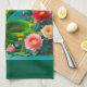 Big green snake surrounded by peonies and auspicious clouds in Origami style (model n°3). Design on kitchen towel. Matching greeting card, holiday postcard, sticker soon. Perfect for Chinese New Year of the Snake 2025.