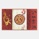 Modern and traditional design with golden Chinese Horse paper-cut (image printed) on dark red round shape into calligraphic background (Fu ideogram meaning luck or fortune) in grey tones + pink blossoms of peach trees. Design on rectangular sticker to place in vertical position + large 2026 (original handwritting). Matching square invitation with text for the celebration of Chinese new Year, greeting card, holiday postcard and party supplies (soon). Perfect for Chinese New Year of the Horse 2026.