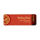 An elegant visual of a golden horse with blossoms into a circle (inspired by traditional Chinese paper-cut) with red circle overlay a red and yellow traditional Asian pattern + graphic "HAPPY NEW YEAR" in Chinese and English and old Chinese calligraphy for "horse" on the right on gradiant red colour band. Design on return address labels. Available similar design with red paper cut-out of a horse on golden circle.