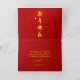 Modern design with golden textured paper (printed image) with Large golden Chinese wishes + large 2026 in red + small Horse paper cut-out with Fu ideogram + yellow texts HAPPY NEW YEAR and Year of the Horse onto a red background. Design on horizontal standard greeting card with the same paper cut-out in large size and in red colour on red background inside. You can easily change year and colour background (inside) by clicking the customise button. Matching holiday postcard, sticker and more soon... Perfect for a timeless and modern Chinese New Year of the Horse 2026.