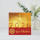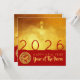Modern design with golden textured paper (printed image) with Large golden Chinese wishes + large 2026 in red + small Horse paper cut-out with yellow texts HAPPY NEW YEAR and Year of the Horse onto a red background. Design on square flat card invitation + texts (for celebrating The Chinese New Year) to customise in back. You can easily change texts by clicking the customise button. Matching greeting card, holiday postcard, sticker, party supplies and more soon... Perfect for a timeless and modern Chinese New Year of the Horse 2026.