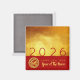 Modern design with golden textured paper (printed image) with large 2026 in red + small Horse paper cut-out with yellow texts HAPPY NEW YEAR and Year of the Horse onto a red background. Design on square magnet. Available in rectangular photo flexible magnet. You can easily change texts by clicking the customise button. Matching greeting card, holiday postcard, sticker, party supplies and more soon... Perfect for a timeless and modern Chinese New Year of the Horse 2026.