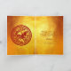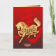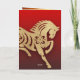 Golden traditional Chinese Paper cut-out of a Horse as central motif with large Chinese ideogram of the horse as background. Design on vertical greeting card with texts to customise inside the card. Matching holiday postcard. Perfect for Chinese New Year of the Horse 2026.