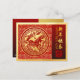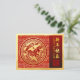 An elegant visual of a red horse with blossoms into a circle (inspired by traditional Chinese paper-cut) with gold circle (image printed) overlay a red and yellow traditional Asian pattern + graphic "HAPPY NEW YEAR" in Chinese and English and old Chinese calligraphy for "horse" on the right on gradiant red colour band. On the back are the same gradiant background (on the left) for texts to personalise: your message and return address + golden textured paper (image printed) on the right. Design on horizontal holiday postcard. You can easily personalise this Lunar New Year postcard by customising the greeting on the back or delete for your handwritten note, type in your return address. Available similar design with golden paper cut-out of horse. Matching real foil holiday postcard.