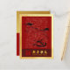 Original wash painting n°4 of a Horse by RB. Design on vertical holiday postcard with various Chinese calligraphy of Fu (meaning Luck) ideogram into a red background + old Chinese calligraphy for Horse + Wishes in Chinese and English framed with golden textured paper (image printed) + texts to personalise in the back of the postcard.