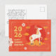 The 2026 Year of the Horse postcard showcases a majestic golden horse galloping across a festive red backdrop. Lanterns and sakura petals float around, creating a postcard that radiates energy and optimism. This Chinese New Year greeting reflects the dynamism of the horse and the cultural richness of the Lunar New Year, making it a perfect keepsake for the holiday.