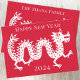 A modern Chinese New Year dragon design. Change the family name on the back and any of the text on the front to personalise.