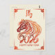 Celebrate the Year of the Fire Horse 2026 with this striking watercolor-inspired design. Featuring a bold red and orange horse illustration with flowing lines that echo fire and motion, paired with the Chinese character for Horse (馬) and traditional corner ornaments, this card is perfect for sending warm Lunar New Year wishes.
