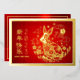 Bold, graphic real gold foil “Happy New Year” typography in both Chinese and English and a stunning visual of an elegant real gold foil rabbit with flowers, clouds and stars, overlay a traditional red circle pattern and real gold foil border on the front. On the back, a cloud and star visual, along with your personal message, overlay a brushed red faux foil background. Feel the warmth and joy of the holiday season whenever you send this stylish yet modern, personalised 2023 Chinese New Year of the Rabbit greeting card. Make sure someone special receives this greeting!