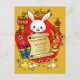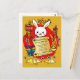 Celebrate the Chinese New Year with this bold, cute cartoon design with a rabbit holding a scroll. Bright gold and red with a fish carp, flower, and more.