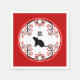 Chinese New Year, Year of the Rat design with a rat, the lettering for rat and stylised red blossoms bordered in white and shades of red.