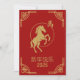 Celebrate the Year of the Horse 2026 with this stunning red and gold Chinese New Year card. Featuring a bold golden horse adorned with traditional Chinese decorative patterns, this design symbolises strength, vitality, and prosperity. The rich red background embodies good luck and happiness, making it the perfect card to share New Year blessings with family, friends, and loved ones. An elegant keepsake that combines modern style with timeless tradition for the Lunar New Year. Also available as digital invite!