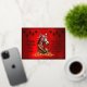To celebrate the Year of the Horse, our Chinese New Year Red Horse Foil Greeting Foil Holiday Card shows the bust of a horse in red and gold. Above the image and the text are gold lanterns. All text are customisable.