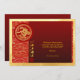 An elegant visual of a golden snake with blossoms into a circle (inspired by traditional Chinese paper-cut) with red circle overlay a red and yellow traditional Asian pattern + graphic "HAPPY NEW YEAR" in Chinese and English and old Chinese calligraphy for "snake" on the right on gradiant red colour band. Design on holiday postcard with wishes to personalise. Matching greeting card, holiday postcard, square flat card, round flat card, vertical flat card and more soon.