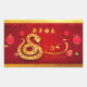 Cute paper-cut of a Snake with drop shadow placed onto a decorative background with stylised Chinese lanterns and flowers. Design on horizontal rectangular sticker with Happy New Year in Chinese and Year of the Snake + golden textured paper (printed image) as background. You can easily change position and size of the Snake, Chinese wishes and Year of the Snake (text image). Matching greeting card, postcard, magnet, (invitation, craft supplies, party supplies and more soon)...  Perfect for Chinese New Year of the Snake 2025.