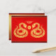Double Chinese golden Snake paper cut-out with red Chinese ideogram for Snake in the centre onto a golden circle + "Happy New Year" in English and Chinese on red textured paper (image printed) as background. Design on horizontal holiday postcard with wishes to customise on golden textured paper (image printed) in back. Matching greeting card, craft products and more soon... Perfect for Chinese New Year of the Snake 2025 or Birthday (people born in Snake Year). --------- "The snake (蛇) is the sixth of the twelve-year cycle of animals which appear in the Chinese zodiac related to the Chinese calendar.