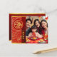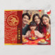 An elegant visual of a golden snake with blossoms into a circle (inspired by traditional Chinese paper-cut) with red circle overlay a red and yellow traditional Asian pattern + graphic "HAPPY NEW YEAR" in Chinese and English and old Chinese calligraphy for "snake" on the right on gradiant red colour band. On the back are the same gradiant background for texts to personalise. Design on horizontal postcard + photo. You can easily personalise this Lunar New Year postcard by customising the greeting on the back or delete for your handwritten note and your own photo family. Don't forget the whole collection.