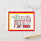 Happy Chinese New Year card for the Year of the Ox, designed for children in particular, featuring Ox diving a bright red London Bus carrying all the other Chinese Horoscope animals!