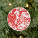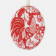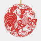 Chinese New Year of the Rooster with tradictional Chinese papercut in red on classic white round ornament. Matching products.