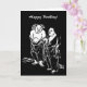 This birthday card features a 9th century Chinese poet and his sidekick in black and white. Han Shan, also known as Cold Mountain, stands with Pickup as they contemplate the universe. A small image is inside. The text reads: Happy Birthday. Wishing you gifts of serenity and joy. It can be customised or removed.