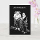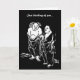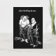 This friendship card features a 9th century Chinese poet and his sidekick in black and white. Han Shan, also known as Cold Mountain, stands with Pickup as they contemplate the universe. A small image is inside. The text reads: Just thinking of you. It can be customised or removed.