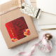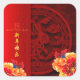Design of Chinese peonies + red Rabbit paper-cut (image printed) into a decorated circle + Happy New Year in Chinese and English + customisable 2023 onto a decorated red background with auspicious clouds. Design on square sticker. Matching square flat card and red envelope. Perfect for Chinese New Year of the Rabbit 2023.