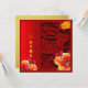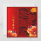 Design of Chinese peonies + red Rabbit paper-cut (image printed) + Happy New Year in Chinese and English + customisable 2023 onto a decorated red background with auspicious clouds. Design on square flat card invitation. Matching square red envelope. Perfect for Chinese New Year of the Rabbit 2023.