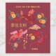 Chinese new year 2024 Year of the dragon dark red and gold elegant floral photo lunar new year party invitation, modern illustration. Original artwork by Caroline Bonne Müller