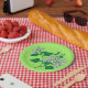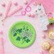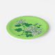 Stylised Chinese spider chrysanthemums in creamy white with a pastel green background paper plates - digital art adapted from a vintage Chinese painting