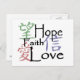 Chinese symbols for hope, love and faith on postcard