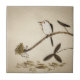 Chinese traditional ink painting with birds and flowers on yellow old canvas.