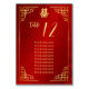 This Chinese wedding seating chart table number cards features a traditional Chinese frame and an artistic golden double happiness symbol on a shimmering ruby red background. With text boxes to add a list of guest names.