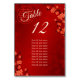 This Chinese wedding seating chart table number cards features pretty red cherry blossoms and a gold double happiness symbol on a shimmering ruby red background. With text boxes to add a list of guest names.