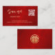 This modern elegant Chinese wedding scan me card features a gold double happiness on a shimmering ruby red background. Qr code card for details on your wedding website and rsvp online.