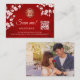 Dusty pink cherry blossoms on a shimmering ruby red background with a gold double happiness symbol Chinese wedding RSVP card. Scan me qr code card for details on your wedding website and rsvp online. Add your photo at the backside.