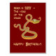 A Birthday Card for someone born in the Chinese Year of the Snake 1917, with a gold-coloured snake, with colourful markings, from a hand-painted illustration by Judy Adamson. You can change the inside message if you wish.