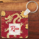 Chinese yellow Dragon with yellow peonies on red background + yellow Chinese dragon ideogram and yellow "Year of the Dragon". Design on Square keychain with monogram or first name to personalise in back. Matching greeting card, postcard, sticker and more...