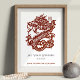 Celebrate the Year of the Dragon with this beautiful and budget-friendly print. Featuring a fiery coiled dragon in a stunning lacquer red paper cut style, this personalised print is perfect for hanging on the wall or slipping into a stocking. Simply customise the name and birth year of the recipient to create a truly unique and thoughtful gift. Great for seasonal and birthday giving. Buy frame from your local store to complete the presentation or optionally purchase a frame from Zazzle at checkout for an extra cost.