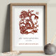 Celebrate the Year of the Snake with this beautiful and budget-friendly print. Featuring a slender snake curling around the flowers in a classic lacquer red paper cut style, this personalised print is perfect for hanging on the wall or slipping into a stocking. Simply customise the name and birth year of the recipient to create a truly unique and thoughtful gift. Great for seasonal and birthday giving. Buy a frame from your local store to complete the presentation or optionally purchase a frame from Zazzle at checkout for an extra cost.