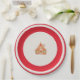 Christmas paper plate in white and red tones with a gingerbread house decoration